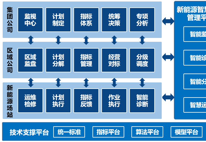 涵蓋了集團化管控、區(qū)域性經(jīng)營及場站級運維等多個應(yīng)用場景,并提供了一整套新能源發(fā)電運行期全生命周期的管理功能,包括設(shè)備數(shù)據(jù)采集、集中監(jiān)控、損失電量分析以及設(shè)備健康度監(jiān)測預(yù)警等。平臺旨在實現(xiàn)“少人、透明、預(yù)測維護”的智慧場站運營,提升新能源企業(yè)的運維效率和智能化水平。